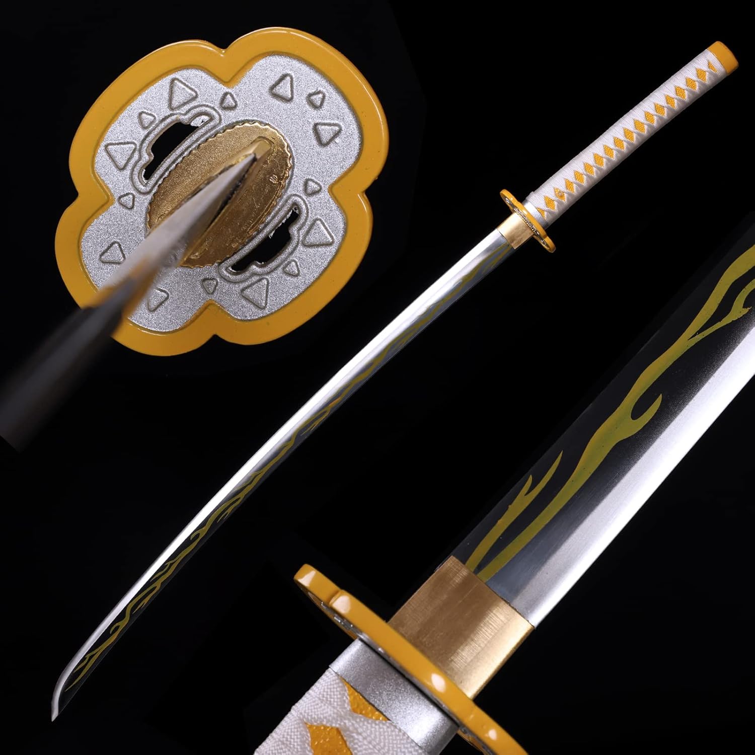 Demon Slayer Zenitsu Sword 41 Inc Carbon Steel No Sharp Cosplay Porp Katana With a Stand